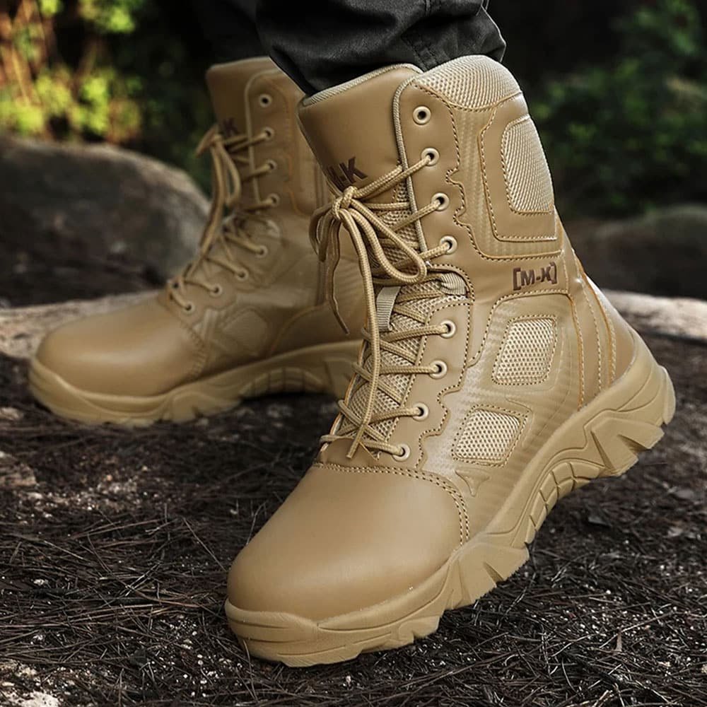 Wytrzymałe buty taktyczne w kolorze piaskowym na każdą pogodę