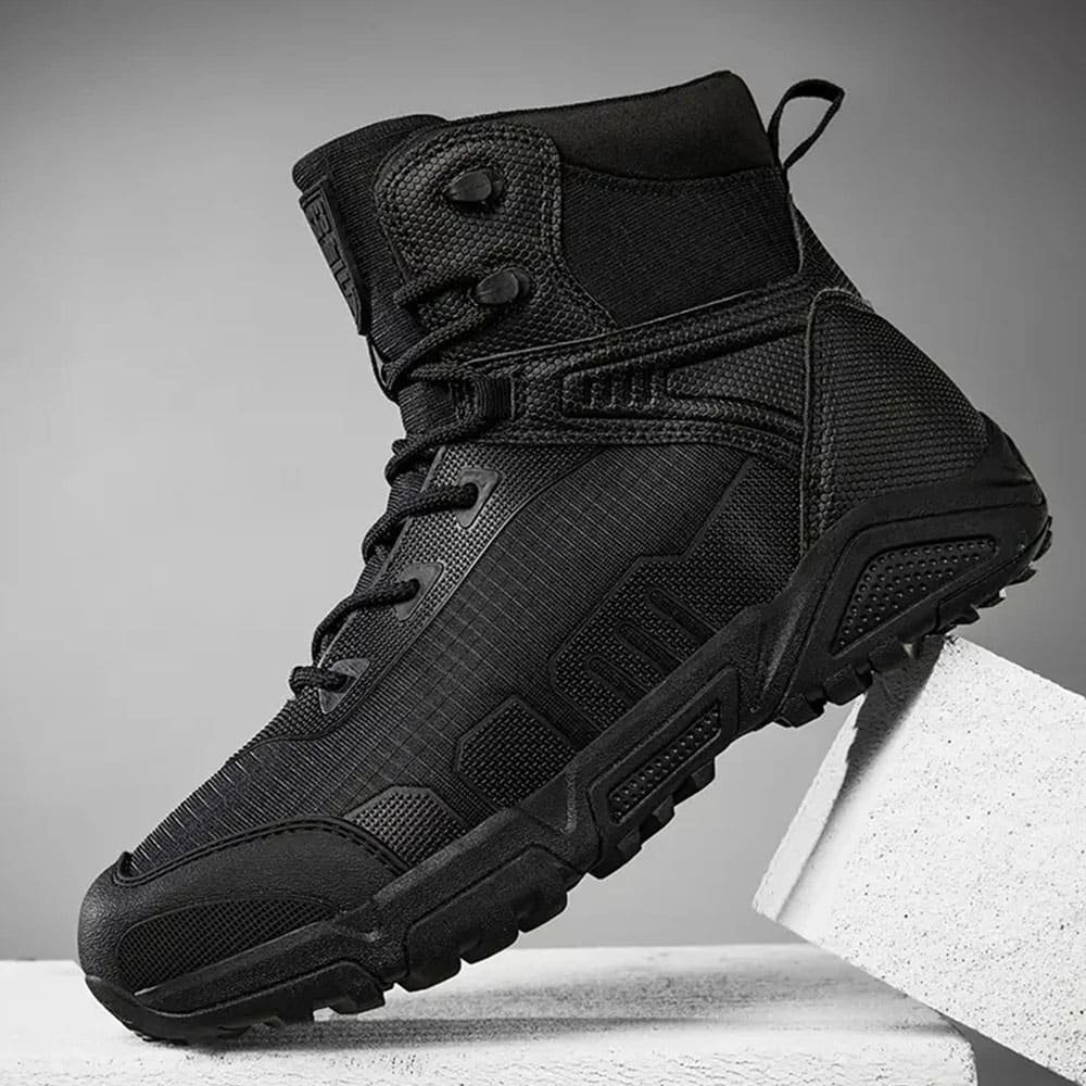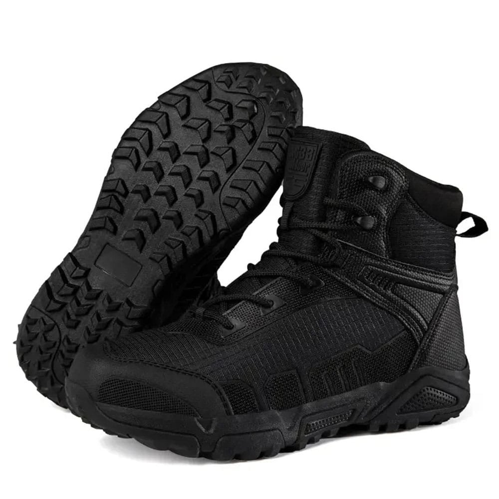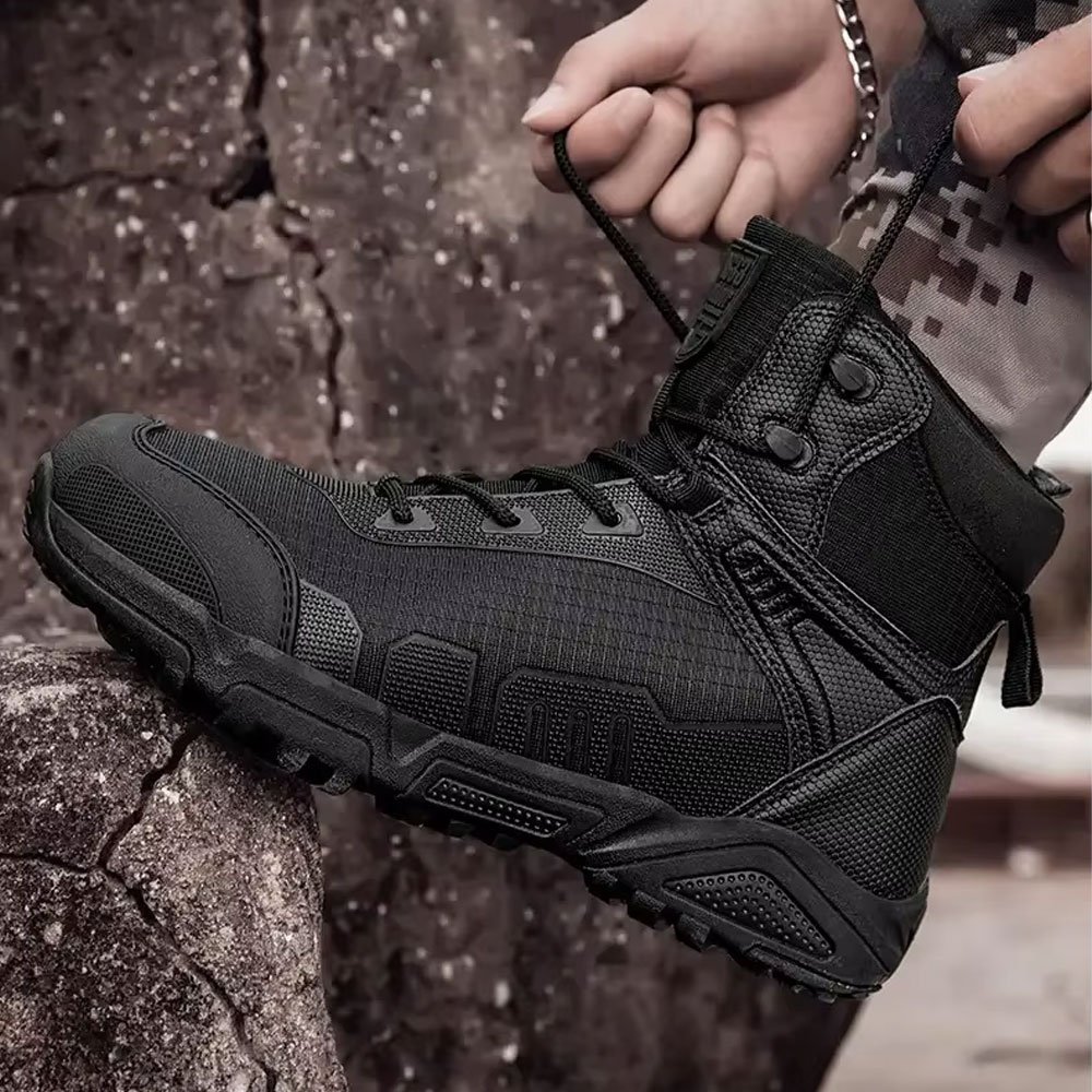Pokonaj najtrudniejsze letnie krajobrazy dzięki naszym taktycznym butom trekkingowym o średniej wysokości w kolorze czarnym. Wykonane ze skóry syntetycznej i PU, ręcznie robione buty zapewniają solidną przyczepność dzięki gumowej podeszwie. Idealne na pustynne wyprawy, oferują komfort i wytrzymałość, dzięki czemu pozostaniesz nie do zatrzymania podczas każdej misji.