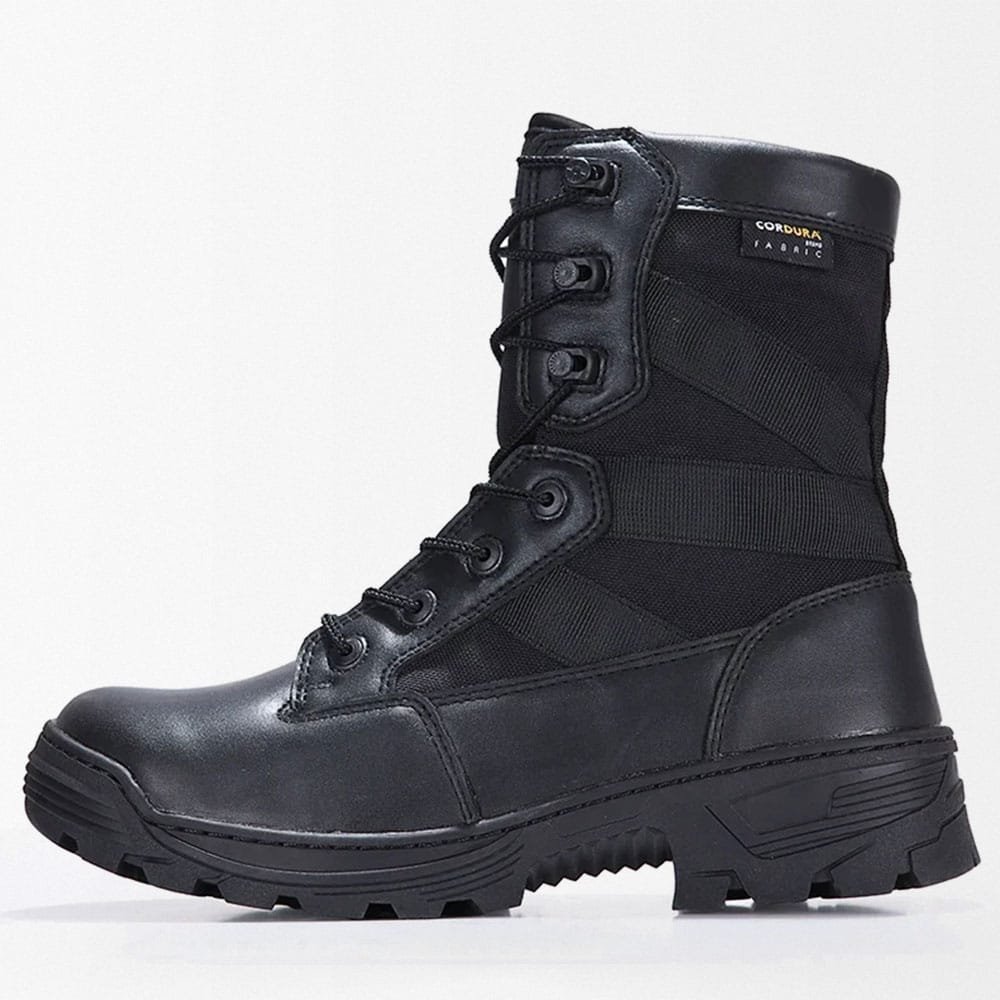 Pokonaj najtrudniejsze zimowe szlaki dzięki naszym czarnym taktycznym butom trekkingowym. Wykonane z naturalnej skóry bydlęcej, zapewniają wyjątkową trwałość i wodoodporność. Podeszwa EVA gwarantuje doskonałą przyczepność, a siatkowa wyściółka skuteczną wentylację. Idealne na misje taktyczne i wymagające wyprawy outdoorowe – te buty to Twój niezawodny partner w terenie.
