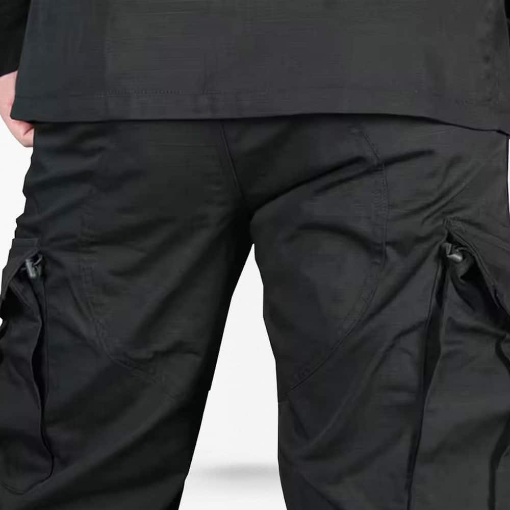 Czarny mundur bojowy stworzony z mocnego materiału ripstop, łączącego poliester i bawełnę, idealny do aktywności outdoorowych takich jak gry airsoft, polowania czy wędrówki. Zapewnia trwałość i komfort nawet w trudnym terenie i zmiennej pogodzie. Dostępny w rozmiarach od 2XS do XL, waży około 1,5 kg.
