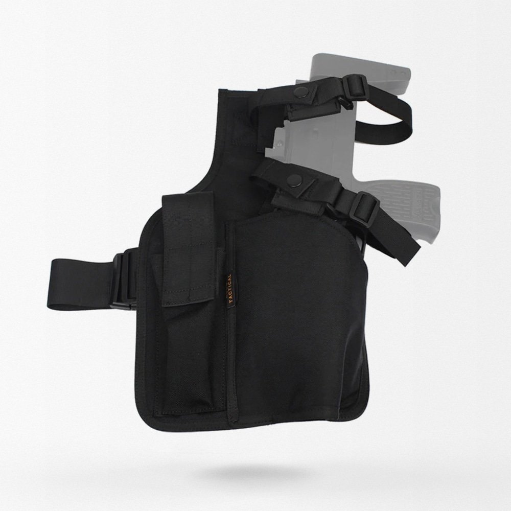 Poznaj niezrównaną wygodę z kaburą udową MP7 wykonaną z trwałego nylonu 1000D. Wyposażona w regulowany pasek na udo z szybkozamykaczem oraz zintegrowaną ładownicę na magazynek, zapewnia szybki dostęp do sprzętu. Idealna do działań taktycznych, łatwo mocuje się do większości pasów służbowych, dopasowana do MP7 i podobnych replik airsoft.