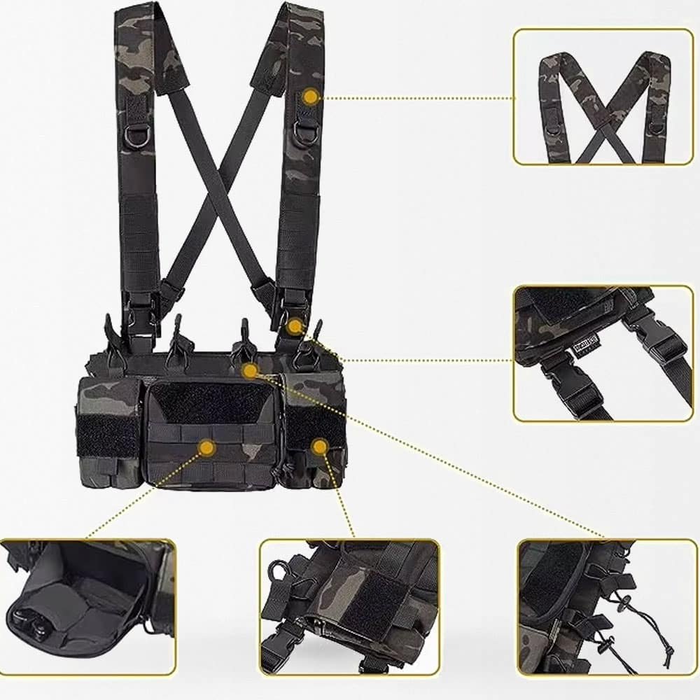 Kamizelka piersiowa X-Harness z szybkim wypięciem „Tigris” wykonana jest z wytrzymałego nylonu Cordura 500D, gwarantującego odporność na uszkodzenia i długotrwałe użytkowanie. Doskonała na każdą porę roku, ta taktyczna kamizelka MOLLE sprawdzi się zarówno dla miłośników outdooru, jak i profesjonalistów. Regulowany krój zapewnia komfort noszenia, a liczne przegródki umożliwiają szybki dostęp do niezbędnego sprzętu.