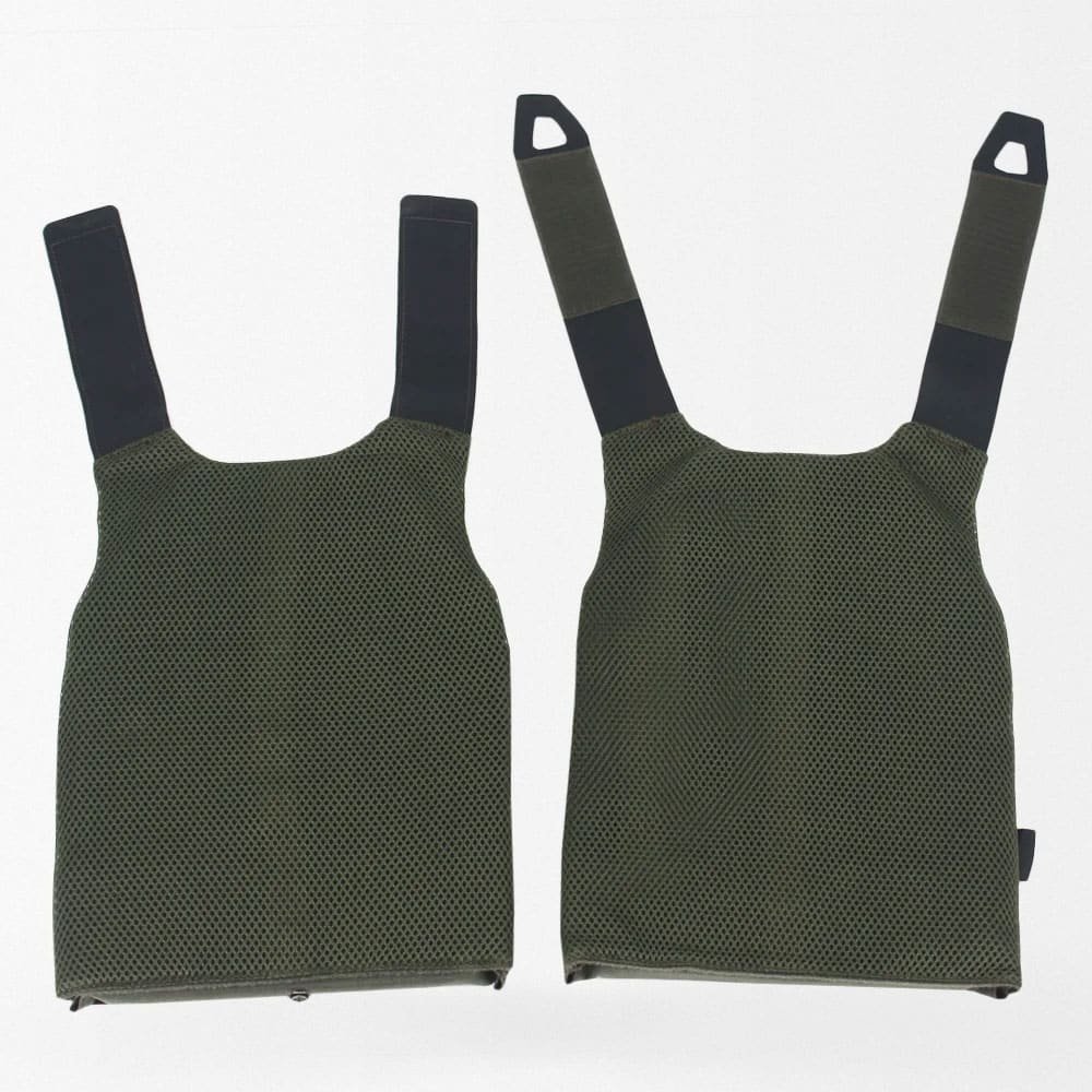 - Przednie i tylne panele na rzepy: Do mocowania dodatków z rzepem