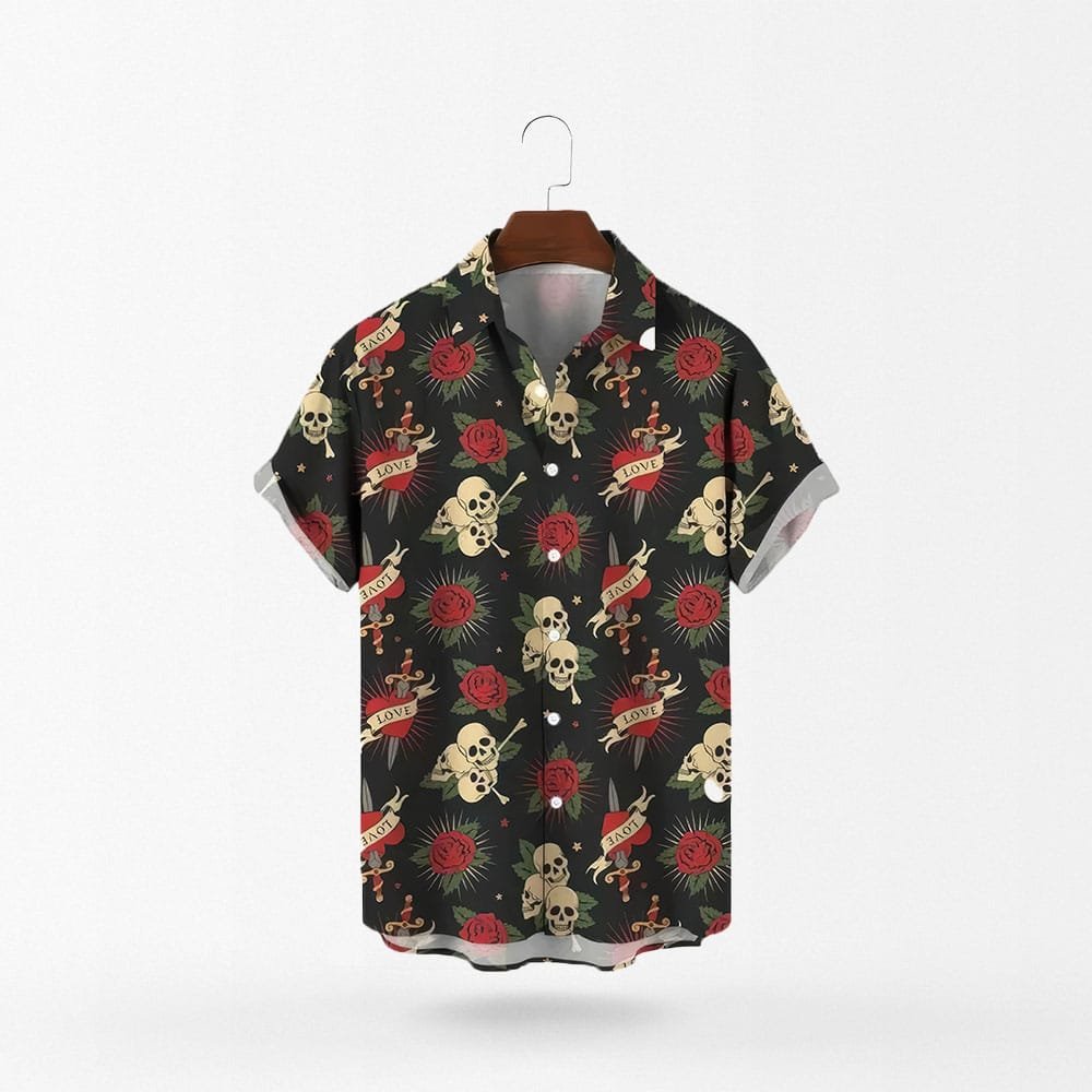 Uzupełnij swoją letnią garderobę o tę kolorową koszulę hawajską z różami i czaszkami. Doskonała na casualowe wyjścia, dni na plaży czy grill w ogrodzie. Wykonana z lekkiego poliestru, z kołnierzem z klapą i krótkimi rękawami, zapewnia komfort nawet w upalne dni. Dostępna w kilku przyciągających wzrok kolorach.