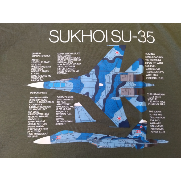 Zdominuj niebo w wielkim stylu dzięki koszulce SU-35. Zainspirowana legendarnym myśliwcem, to must-have dla miłośników lotnictwa. Noś ją z dumą i pokaż swoją pasję do wojskowych maszyn o wysokich osiągach.