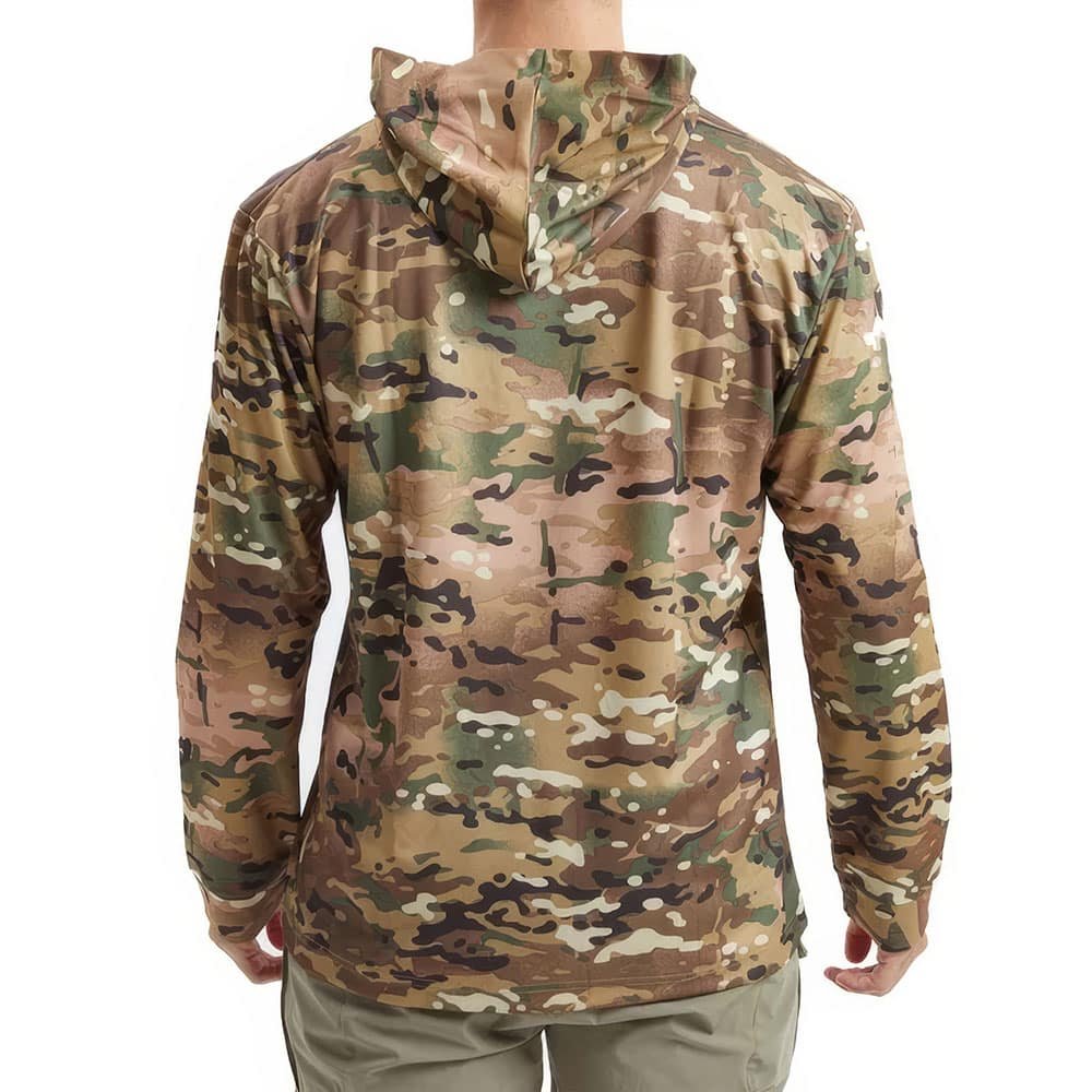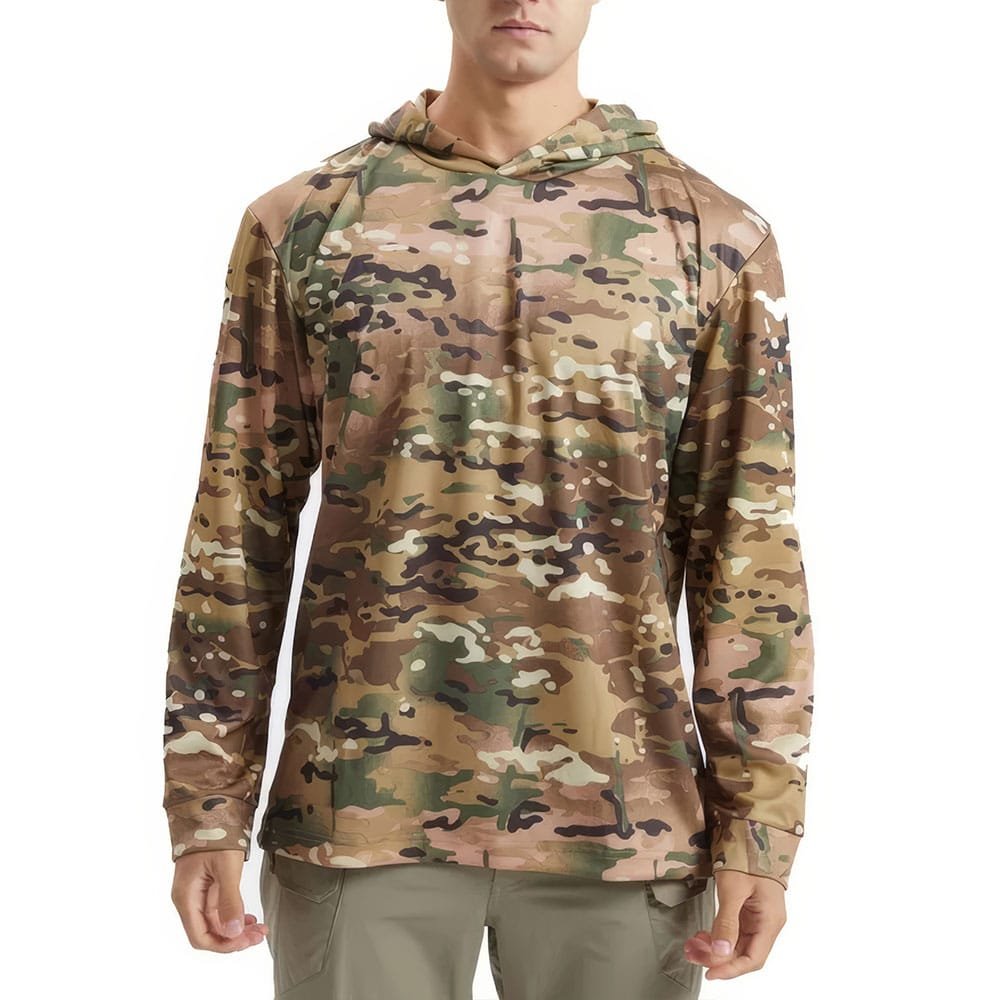 Zapewnij sobie komfort przez cały rok dzięki taktycznej koszulce z kapturem i długim rękawem. Idealna na podróże i aktywności outdoorowe, jej oddychający i szybkoschnący materiał utrzyma Cię suchym i chłodnym. Doskonała na wiosnę, lato i jesień, ta koszulka łączy wszechstronność z trwałością, stając się niezbędnym elementem każdej przygody.