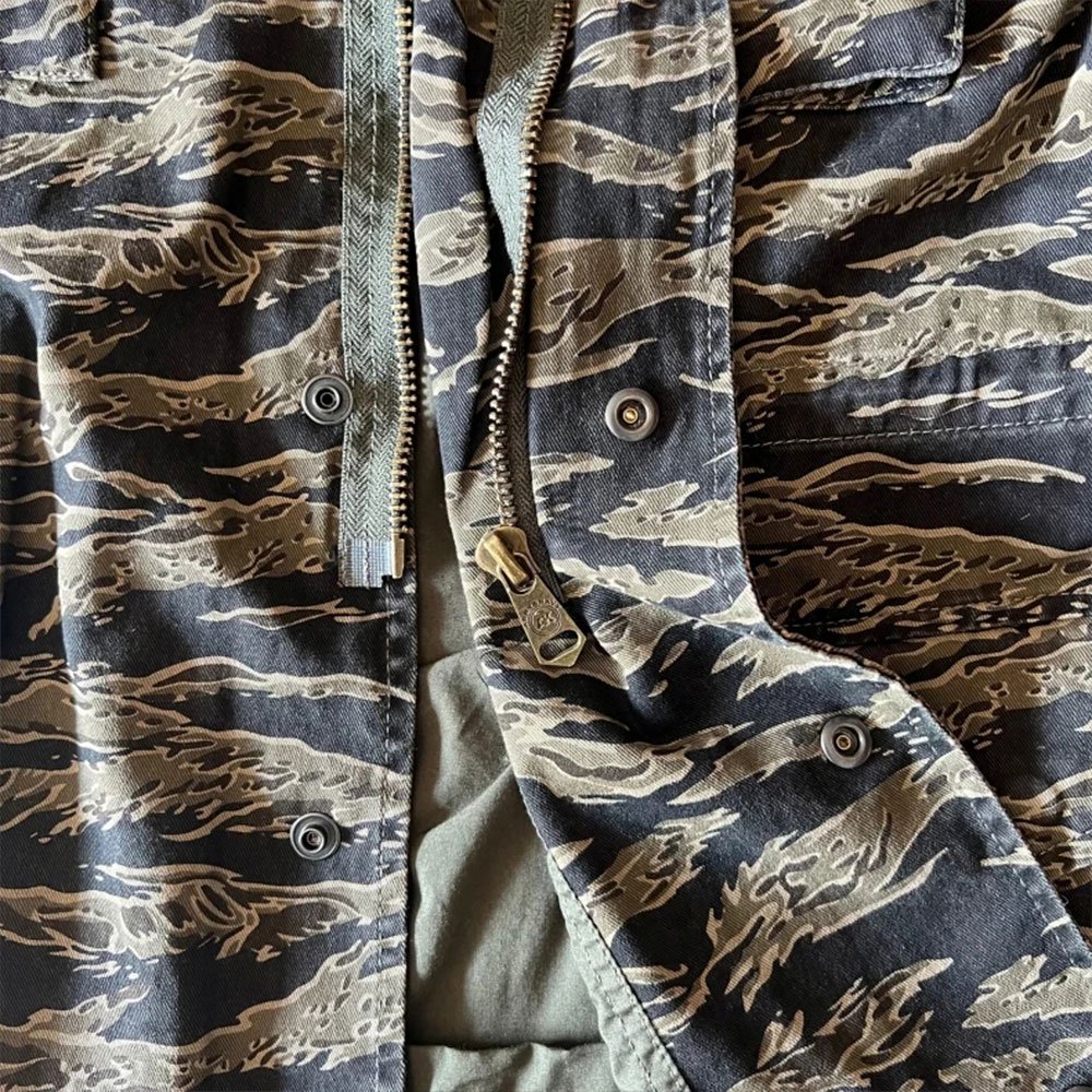 Pozostań ciepły i suchy dzięki kurtce polowej M-65 w kamuflażu Black Tiger Stripe. Idealna na biwaki, wędrówki i polowania, ta wiatro- i wodoodporna kurtka z izolacją termiczną sprawdzi się w zimnych i wilgotnych warunkach. Bawełniany materiał i liczne kieszenie gwarantują wygodę i praktyczność podczas każdej aktywności na świeżym powietrzu.