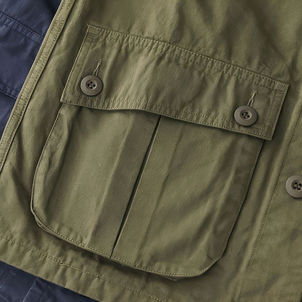 Ta vintage’owa kurtka polowa M43 to doskonały wybór na wiosenne i jesienne wyjścia. Wykonana w 100% z bawełny o wzorze jodełki, o średniej grubości, z czterema kieszeniami z patkami dla większej praktyczności. Dostępna w kolorach granatowym i wojskowej zieleni, łączy militarny styl z retro miejskim charakterem.