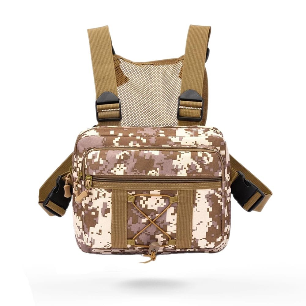 Pokonaj każde wyzwanie z naszą lekką taktyczną ładownicą na klatkę piersiową. Wykonana z wysokogatunkowej tkaniny Oxford, ta wielofunkcyjna torba to niezawodny towarzysz Twoich outdoorowych przygód. Dzięki wodoodpornej powłoce i licznym przegródkom, Twoje niezbędne rzeczy będą zawsze bezpieczne i pod ręką – niezależnie czy idziesz na szlak, jedziesz na rowerze, czy realizujesz misję taktyczną. Dostępna w kolorach khaki, czarnym oraz jungle camo.