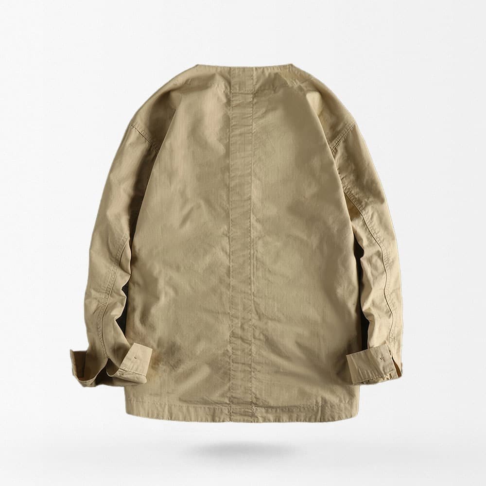 Ta męska kurtka wojskowa vintage to świetny wybór na wiosenne i jesienne dni. Wykonana z wytrzymałej bawełny, z zapięciem na jeden rząd guzików i długimi rękawami, łączy komfort z modnym stylem. Brak kołnierza nadaje jej oryginalnego charakteru, a różnorodność kolorów pozwala dopasować ją do każdej stylizacji.