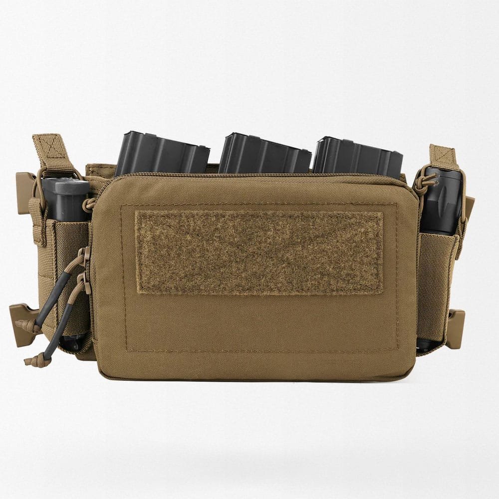 Mikro chest rig „D3CRM” w kolorze Coyote Brown wykonany jest z wytrzymałego nylonu 500D, który zapewnia wodoodporność i niezawodność przez cały rok. Idealny na polowania, paintball czy airsoft, wyposażony w potrójną wkładkę na magazynki oraz wielofunkcyjne kieszenie na niezbędny sprzęt. Regulowany pas naramienny w kształcie litery X pozwala na szybkie przygotowanie do akcji, co czyni go doskonałym wyborem dla miłośników taktyki.