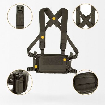 Poznaj niezrównaną funkcjonalność mikro uprzęży piersiowej D3CRM w kolorze ranger green. Wykonana z wytrzymałego nylonu 500D, odpornego na wodę, sprawdzi się w każdych warunkach. Idealna do polowań, paintballa czy airsoftu, wyposażona w potrójną wkładkę na magazynki oraz wielofunkcyjne kieszenie na niezbędny sprzęt. Regulowany pas naramienny w kształcie litery X umożliwia szybkie dopasowanie, czyniąc ją niezbędnym elementem wyposażenia każdego entuzjasty taktyki.