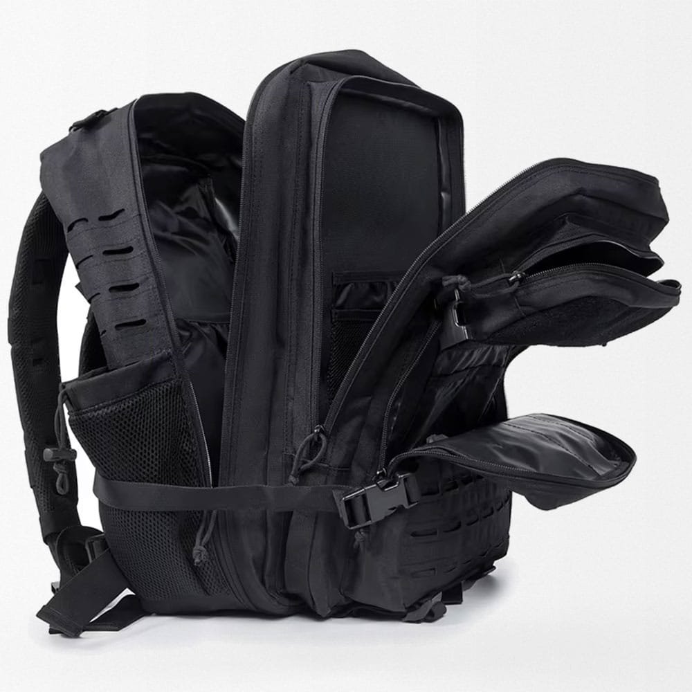 - System MOLLE: Podwójna warstwa tkaniny z laserowo perforowanym wzorem dla zwiększonej wytrzymałości