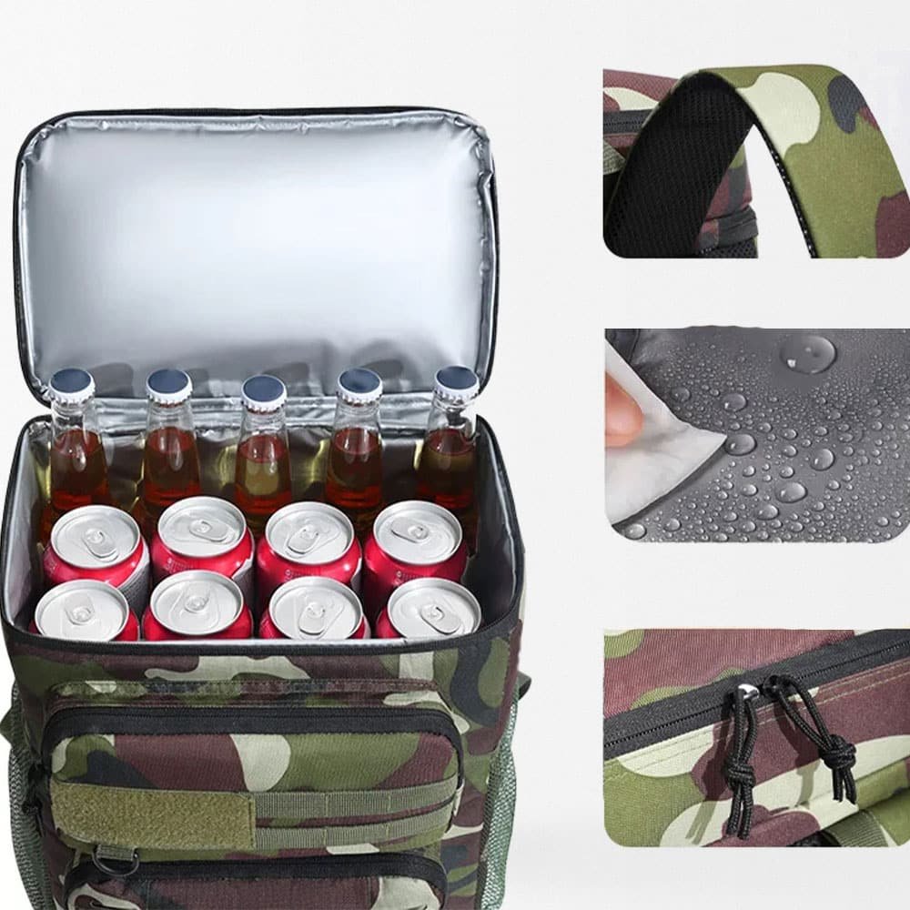 Pokonaj każdy teren z naszym plecakowym termicznym workiem moro na lunch, stworzonym z myślą o taktycznej funkcjonalności i wytrzymałości. Wykonany z odpornego materiału Oxford, ten unisex plecak wyposażony jest w bezpieczny zamek i wewnętrzną ramę, idealny na wędrówki, trekking czy polowania. Zewnętrzne otwarte kieszenie zapewniają szybki dostęp, czyniąc go niezastąpionym towarzyszem w każdych warunkach.