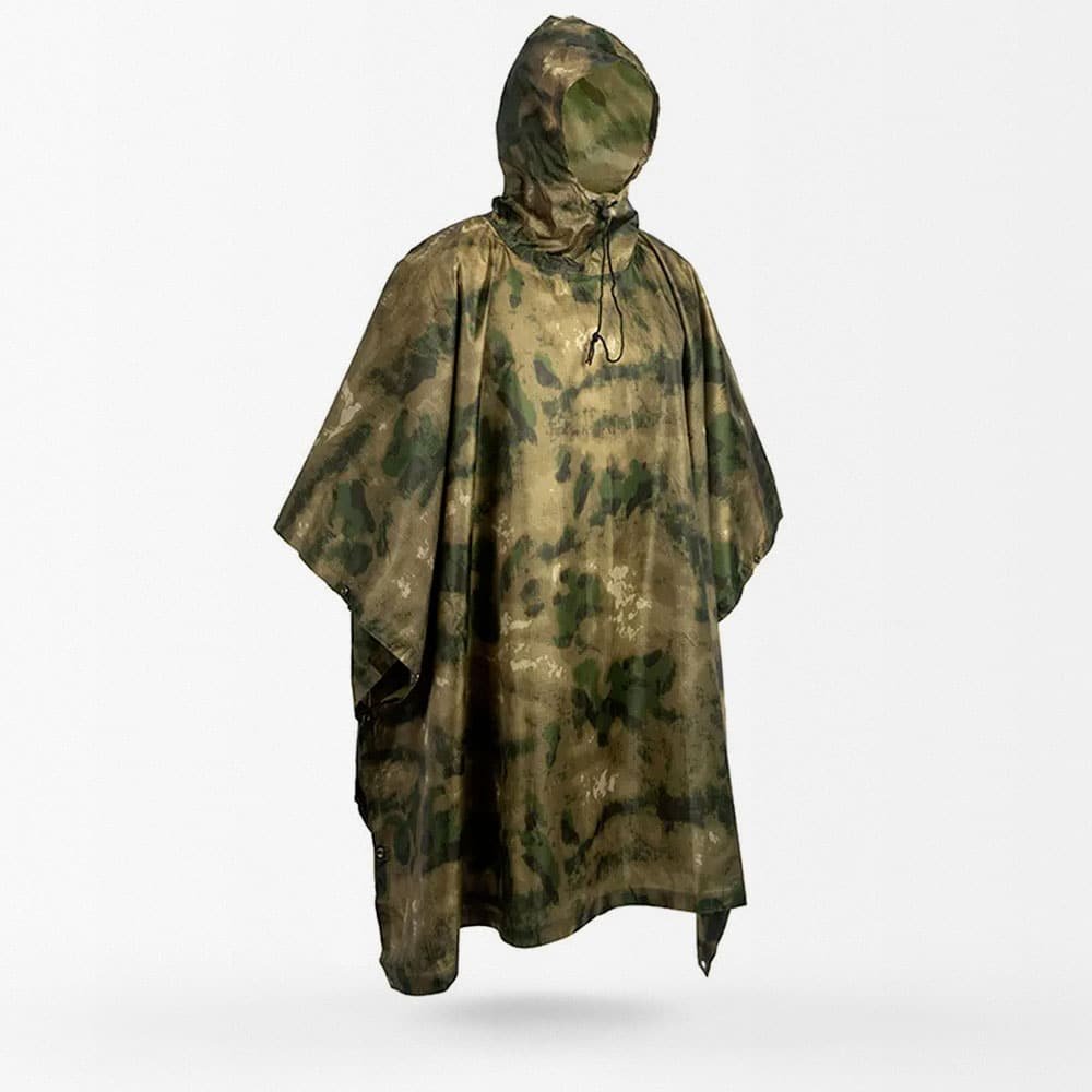 Ten poncho kamuflażowy A-Tacs FG to doskonały wybór na wędrówki i wspinaczki w zmiennej pogodzie. Wykonany z wytrzymałego poliestru z wodoodporną powłoką PU, skutecznie chroni przed deszczem, jednocześnie pozwalając na dyskretne wtopienie się w naturalne otoczenie. Lekki i składany, łatwo zmieści się w plecaku, sprawdzając się podczas przygód o każdej porze roku.