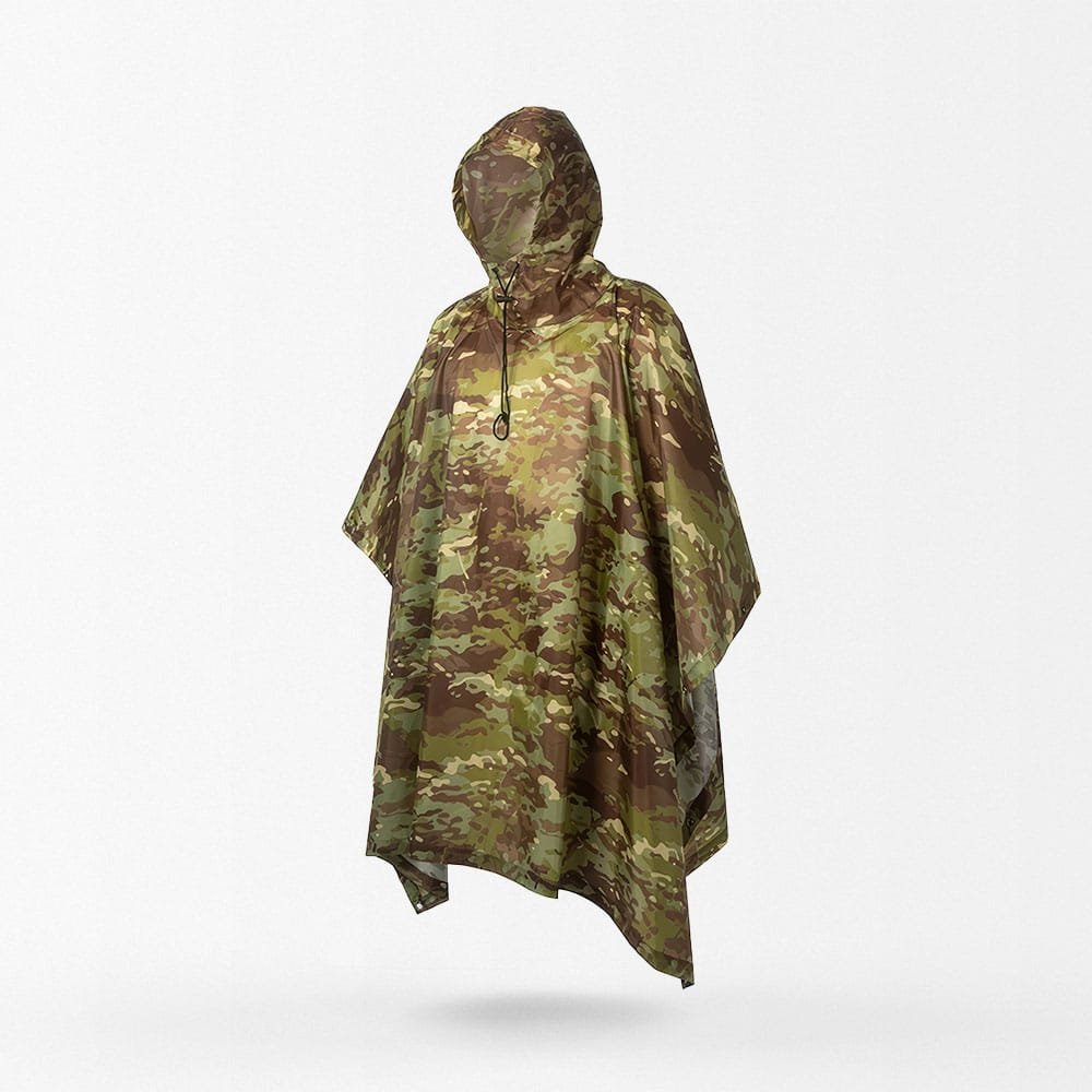 Idealne na biwak, wędrówki i polowania, ponczo przeciwdeszczowe Multicam Tropic to niezawodny towarzysz w zmiennej pogodzie. Wodoodporny poliester zapewnia suchość, a wielofunkcyjny design pozwala używać go także jako maty pod namiot lub daszku. Kompaktowe i lekkie – niezbędne dla każdego miłośnika outdooru.