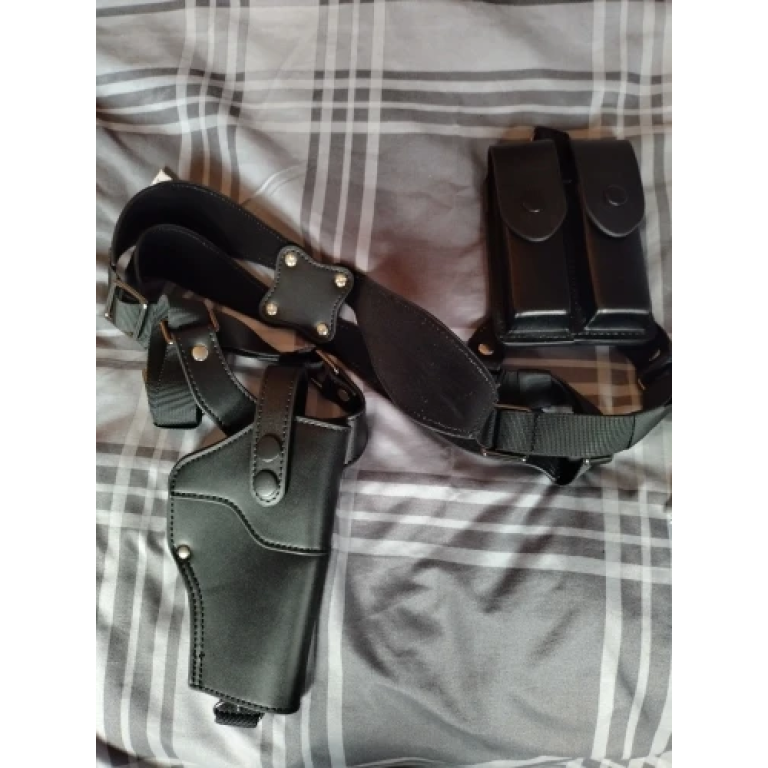 Poczuj niezrównany komfort i bezpieczeństwo dzięki naszej skórzanej kaburze podramiennej. Zaprojektowana dla praworęcznych, ta taktyczna kabura oferuje dyskretne noszenie z regulowanymi paskami dla idealnego dopasowania. Wykonana z trwałej skóry ekologicznej, pomieści różne modele pistoletów, zapewniając łatwy dostęp i dyskretne ukrycie broni. Idealna dla profesjonalistów ceniących niezawodność w każdych warunkach. Dostępna w klasycznej czerni i brązie.
