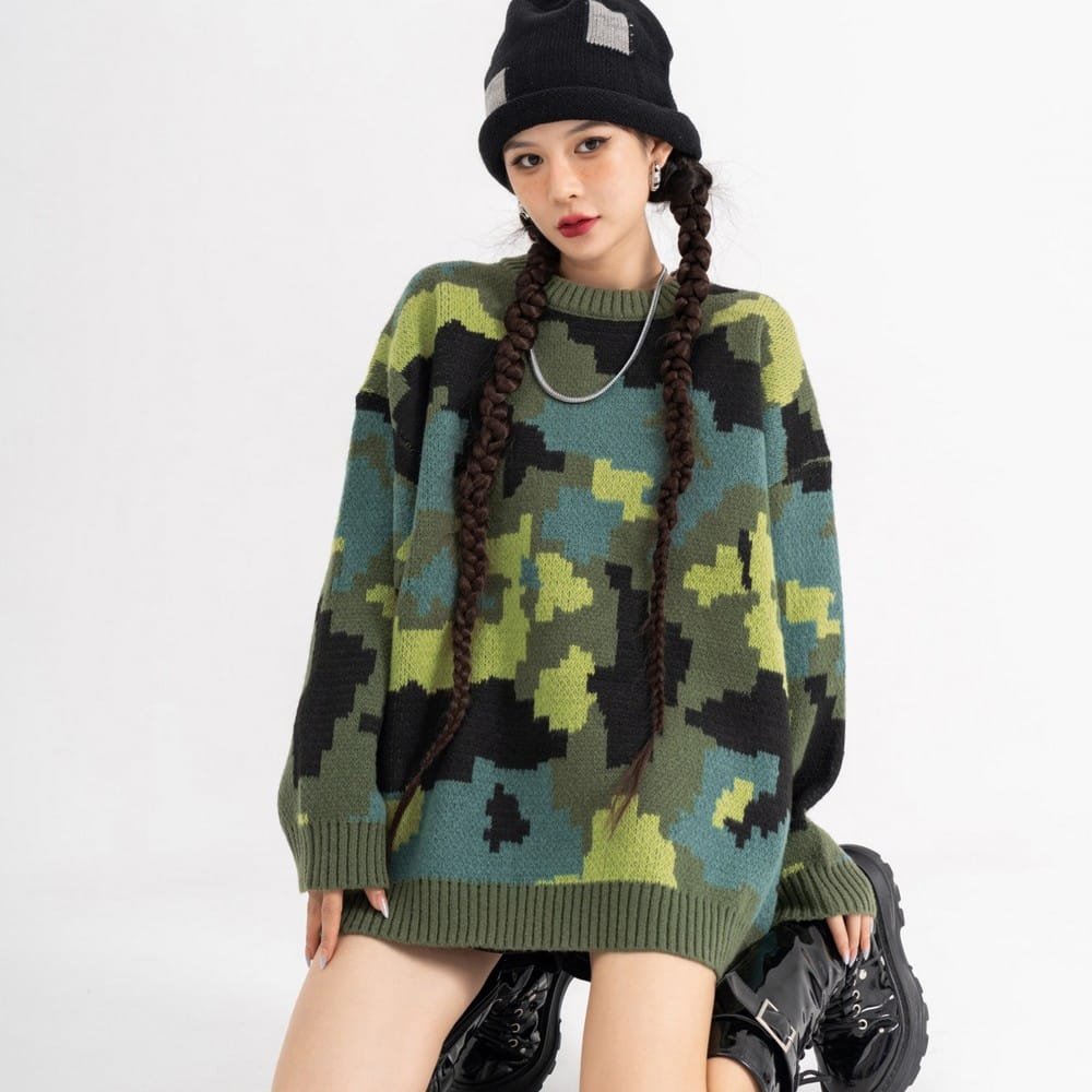 Przenieś się do energetycznych lat 2000 z naszym swetrem w moro. Ten wyrazisty model łączy ponadczasowy wzór kamuflażu z nowoczesnym designem. Wyraziste moro i wygodny materiał sprawiają, że sweter doskonale sprawdzi się na co dzień, na festiwalach muzycznych czy w stylizacjach inspirowanych Y2K. Wyróżnij się z tłumu i podkreśl swój unikalny styl dzięki swetrowi moro Y2K.