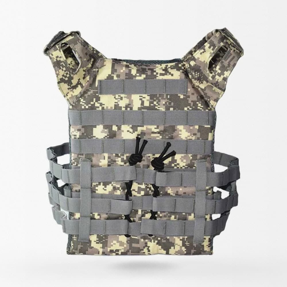 Taktyczna kamizelka JPC do airsoftu wykonana jest z wytrzymałego nylonu 1000D, który zapewnia solidną ochronę i komfort użytkowania przez cały rok. Dzięki systemowi MOLLE z przodu i z tyłu łatwo dopasujesz dodatkowe akcesoria. Doskonała na airsoft, paintball oraz treningi taktyczne, gwarantuje wygodę i funkcjonalność podczas każdej aktywności na świeżym powietrzu.
