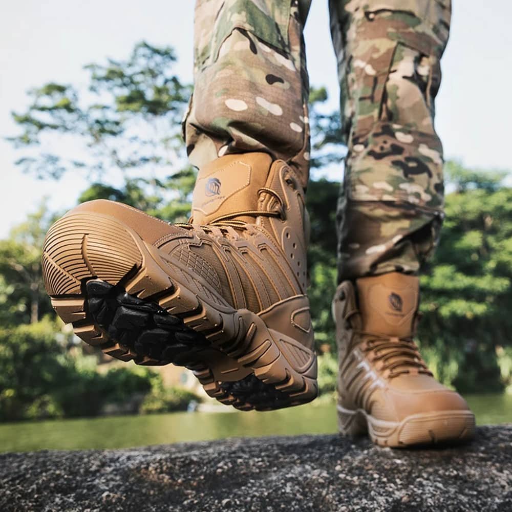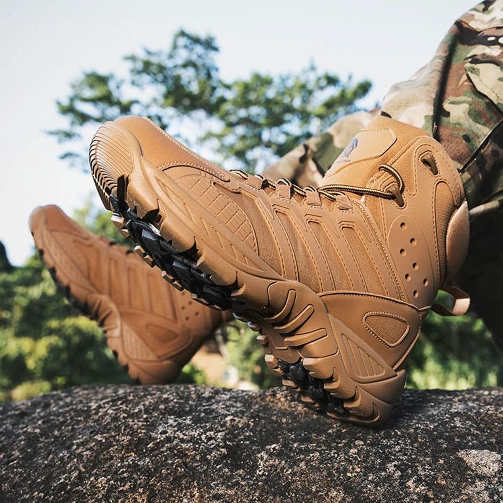 Pokonaj każdy teren z pewnością dzięki naszym taktycznym butom trekkingowym w kolorze Coyote Brown. Zaprojektowane na wiosenne i jesienne wyprawy, wyposażone w solidną gumową podeszwę zapewniającą doskonałą przyczepność oraz oddychającą siateczkową wyściółkę dla maksymalnego komfortu. Idealne na szlaki i misje taktyczne, gwarantują niezawodne wsparcie i trwałość w wymagających warunkach.