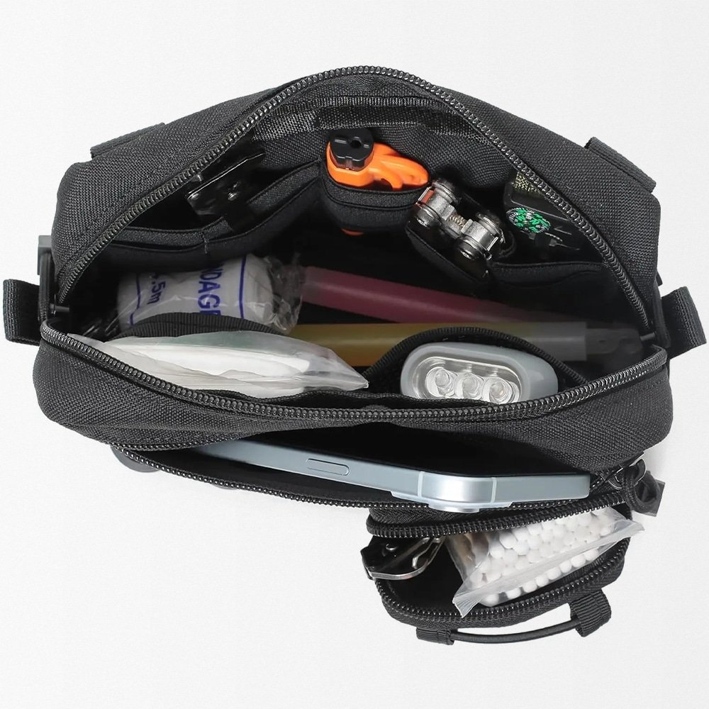 Ten taktyczny organizer wykonany z wytrzymałego nylonu 1000D został zaprojektowany z myślą o myślistwie i aktywnościach na świeżym powietrzu. Kompaktowy rozmiar zapewnia dużo miejsca dzięki licznym przegródkom i elastycznym paskom. Dostępny w kolorach Czarny, Tank i Zielony, łatwo mocuje się do kamizelek i plecaków, gwarantując szybki dostęp do niezbędnego wyposażenia w każdych warunkach.
