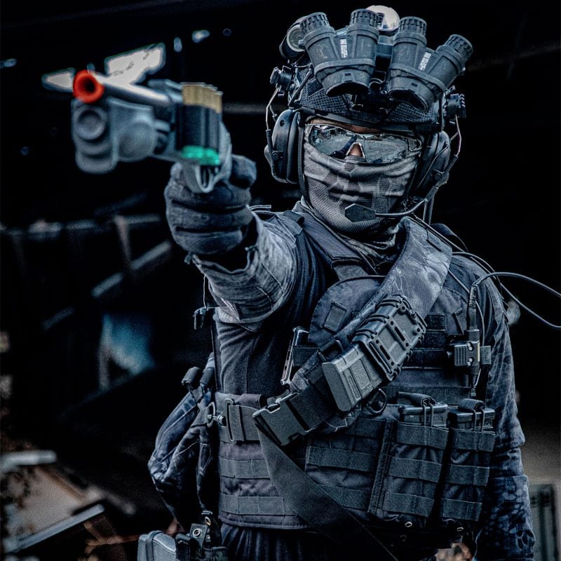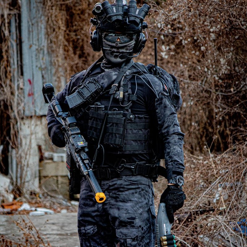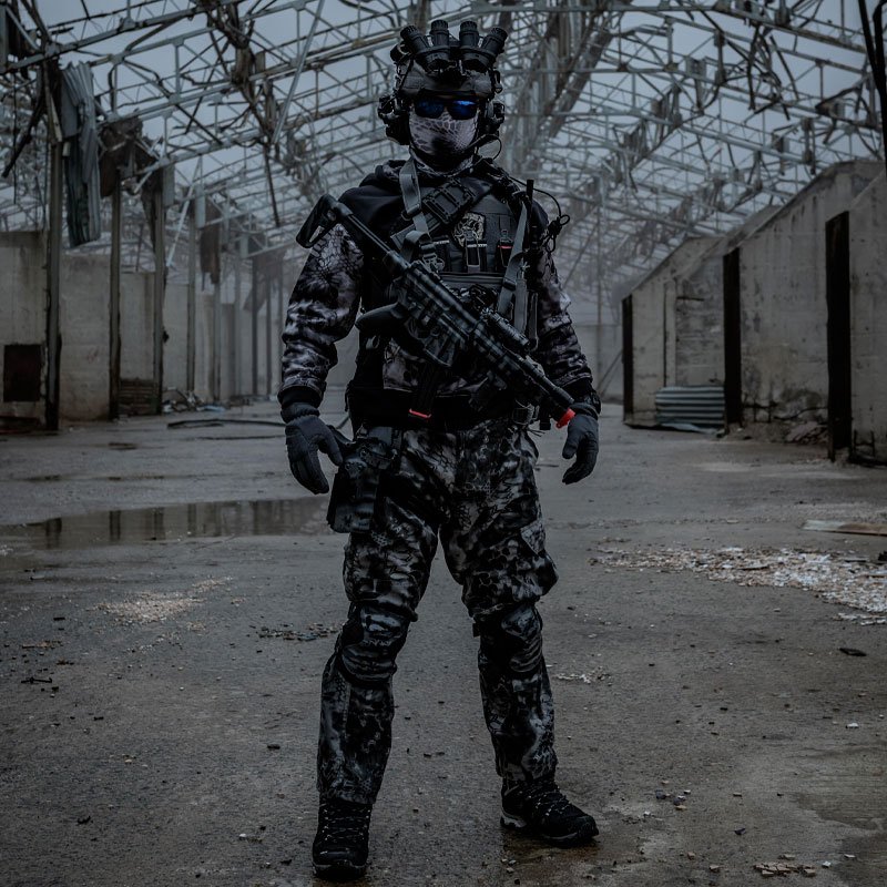 Skuteczność kamuflażu Kryptek Typhon jest zakorzeniona w jego innowacyjnym projekcie, który wykorzystuje połączenie geometrycznych i organicznych kształtów, aby skutecznie zakłócać ludzką sylwetkę. Ciemna kolorystyka została starannie dobrana, aby wtopić się w miejskie krajobrazy nocne, minimalizując widoczność użytkownika na tle sztucznego światła i cienia powszechnie występującego w środowiskach miejskich. Wieloskalowe podejście do wzoru, obejmujące zarówno mikro, jak i makro wzory, zapewnia, że Typhon pozostaje skuteczny na różnych dystansach, zwiększając zdolność użytkownika do pozostania niewykrytym w krytycznych sytuacjach.