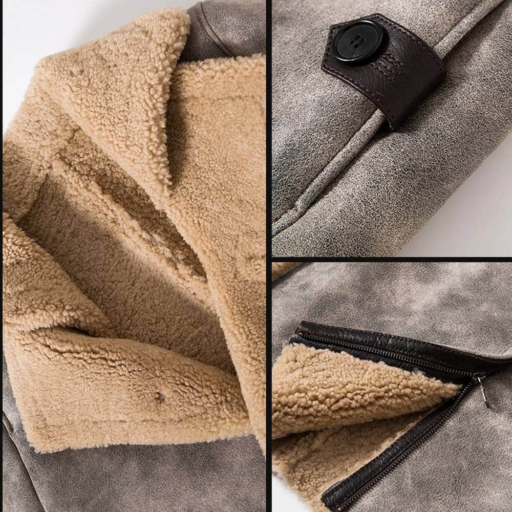 Idealny na chłodne dni jesieni i zimy, ten wojskowy kożuch z owczej skóry łączy elegancję z praktycznym ciepłem. Doskonały do pracy i formalnych spotkań, dzięki grubemu futrzanemu podszyciu i jednorzędowemu zapięciu zapewnia komfort termiczny. Klasyczny kołnierz i futrzane detale podkreślają jego wyrafinowany charakter, czyniąc go niezbędnym elementem garderoby na zimę.